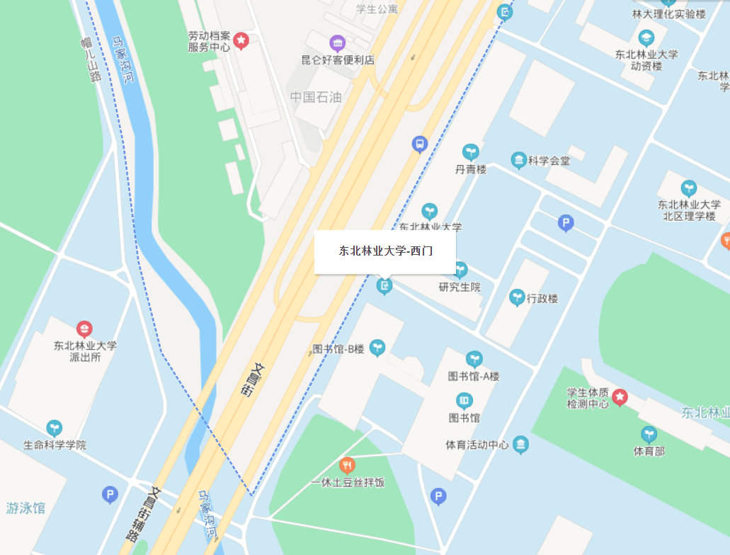 哈尔滨市香坊区和兴路26号东北林业大学西北2号门(具体见位置图),不允许考生开车进入校园,校门附近道边不允许停车。入校门时须扫描龙江健康码、测量体温。