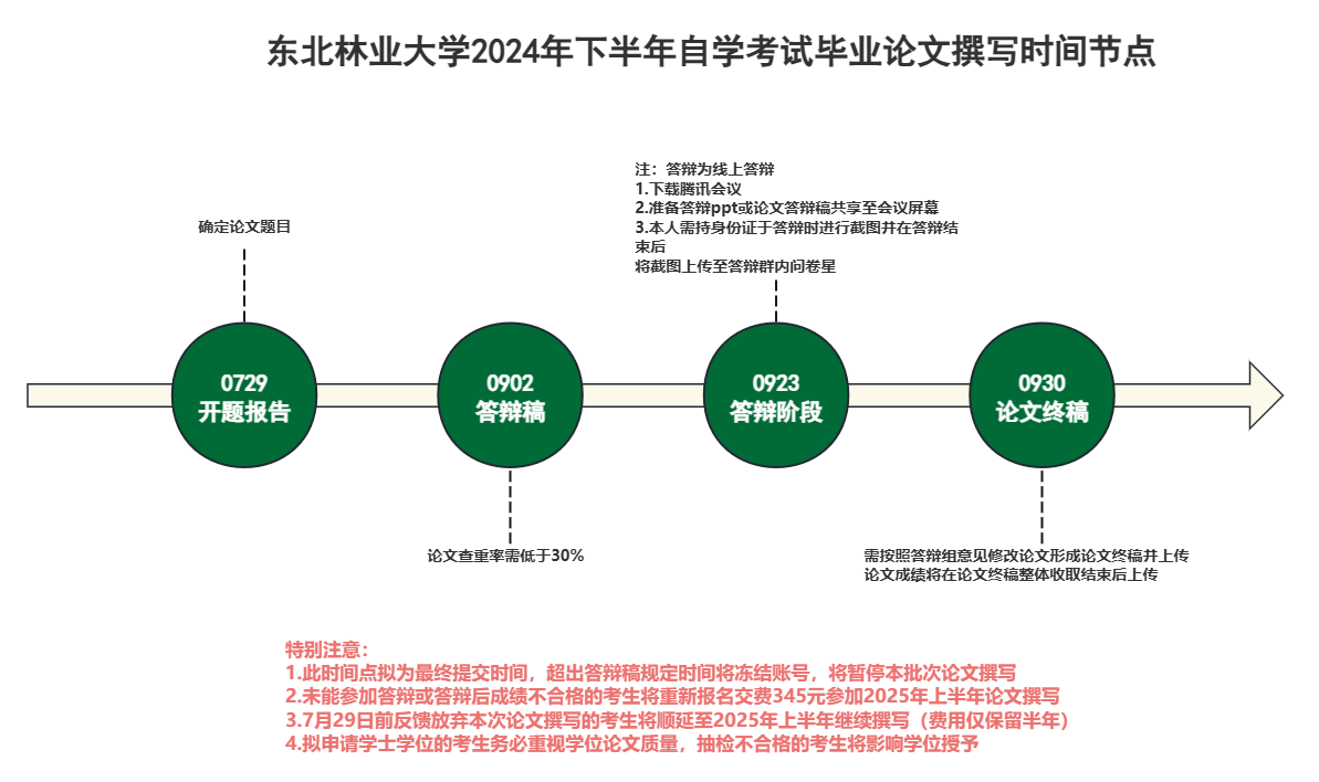 以下为东北林业大学2024年下半年自学考试毕业论文撰写时间截止点