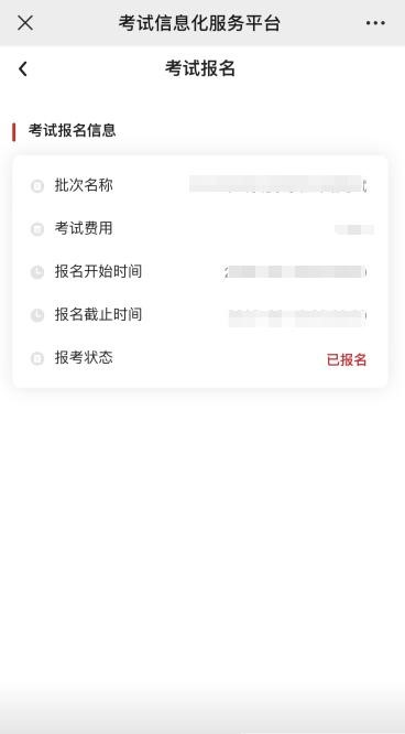 点击完成可看到考试报名信息如下: