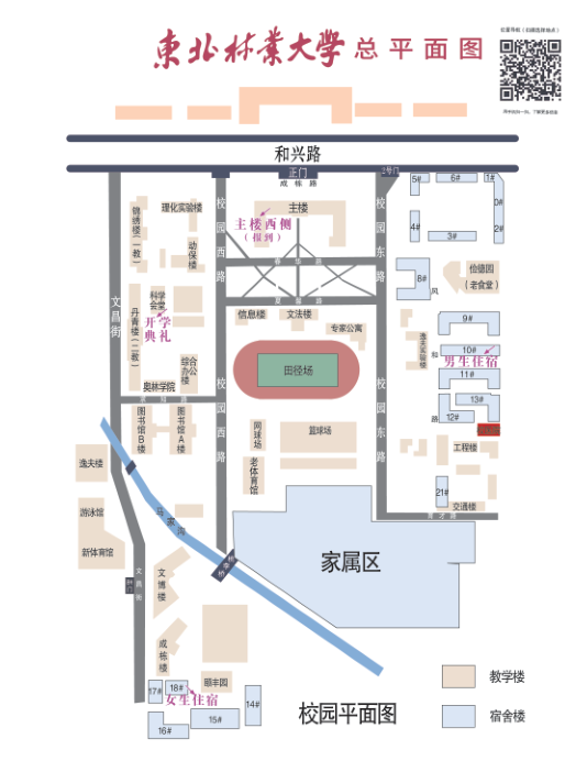 地址:哈尔滨市香坊区和兴路26号,东北林业大学主楼西侧五楼501报到处。(学校严禁外来车辆进入,建议乘坐公共交通工具到校参加活动)