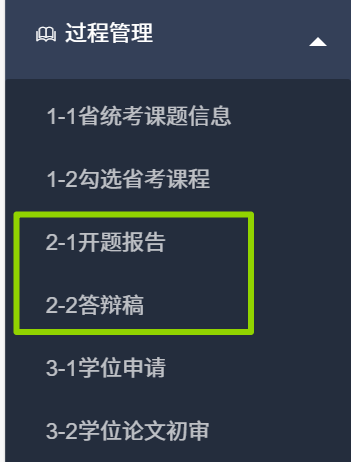 本次论文撰写需在维普毕业论文(设计)管理系统完成全部流程,包括选题管理中的选题变更;过程管理中的2-1开题报告、2-2答辩稿及最终稿。