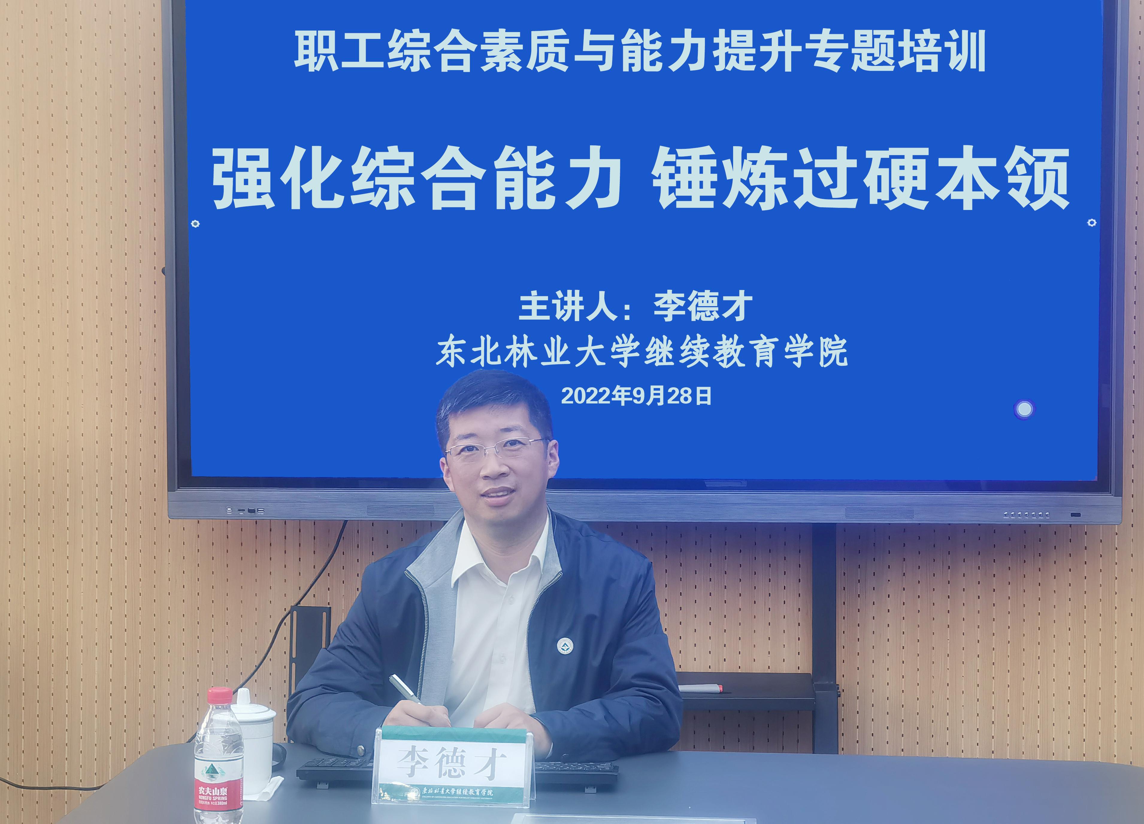在培训过程中,与会人员认真聆听记录。会后,大家一致表示,李主任的培训内容贴近工作实际,对今后提升综合素质和服务管理水平具有很好的实际指导和借鉴意义。李国梁院长在总结发言中表示,此次培训是加强学院队伍建设、促进事业发展的一个良好契机,学院将切实提高广大职工内在素质,锤炼过硬本领,为培养和打造一支具有开放意识和创新思维,具备改革攻坚克难能力,善谋善作善成的专业化服务管理团队奠定坚实的基础,加快推动我校继续教育事业迈上新台阶,以实际行动迎接党的二十大胜利召开!
