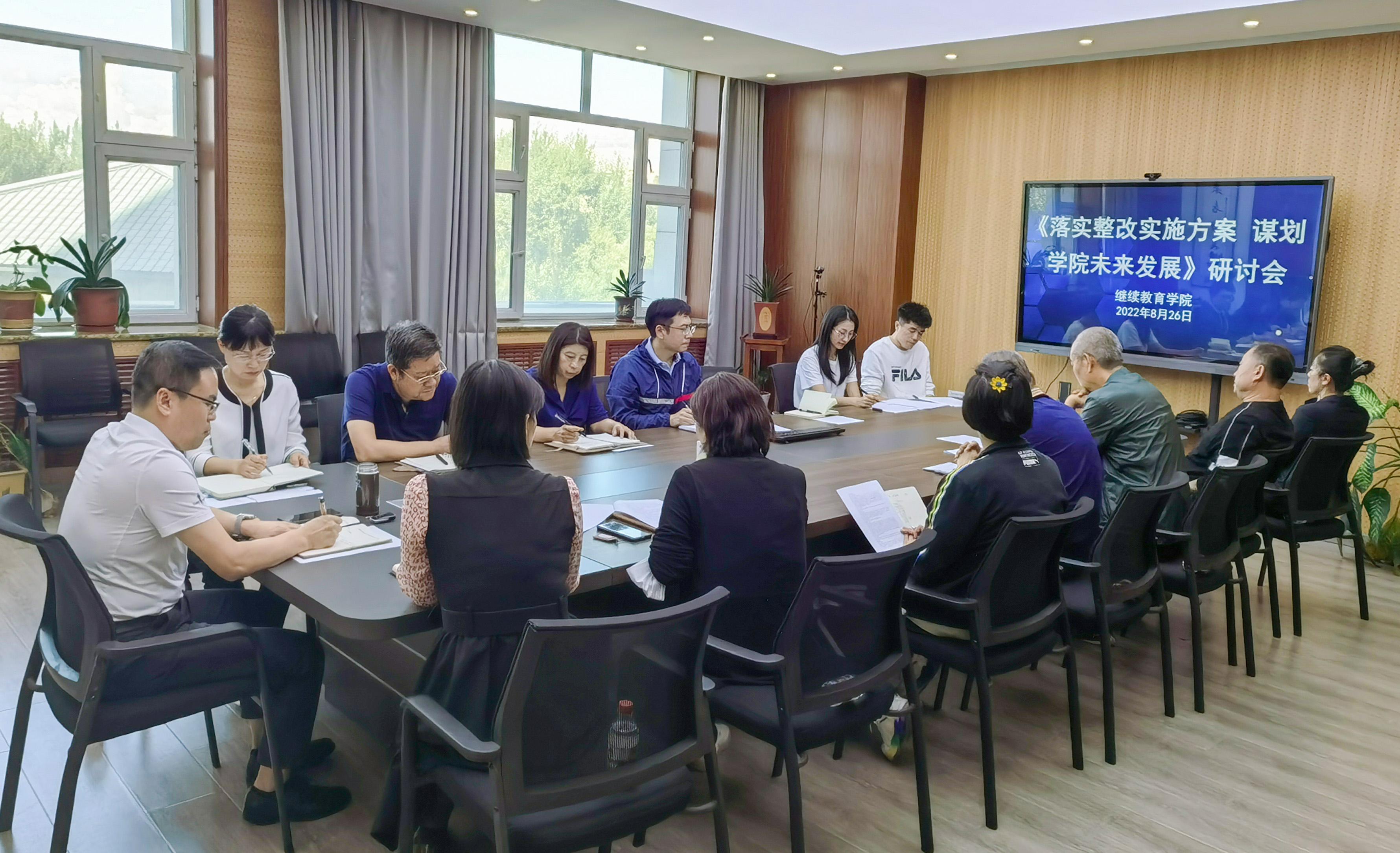 为深入谋划学院重点工作、统筹推动学院高质量发展,8月26日,继续教育学院在文博楼308会议室召开《落实整改实施方案 谋划学院未来发展》研讨会。会议由继续教育学院副院长葛冰主持,学院全体职工参加会议。