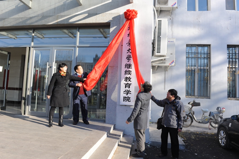 当前在全党深入开展党的群众路线教育实践活动,所以揭牌仪式简单而热烈。继续教育学院领导班子拉下了覆盖牌匾的绸布,从此继续教育工作迈入了崭新的发展空间。