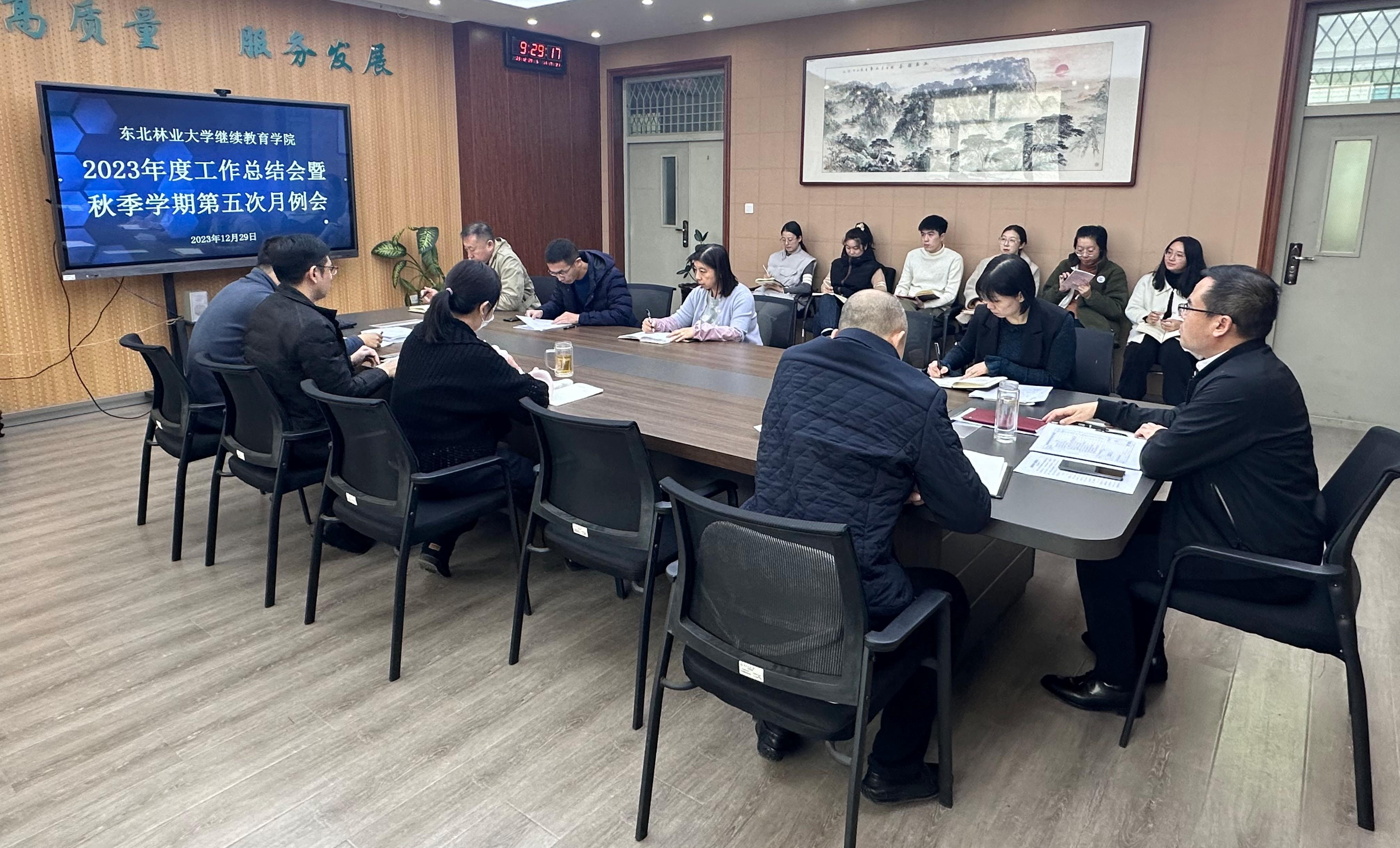 为进一步提升学院发展质量,做好年度工作总结和下一年度工作规划,促进全院教育事业再上新台阶,12月29日上午,继续教育学院2023年度工作总结会暨秋季学期第五次月例会在文博楼308会议室召开。学院院长兼直属党支部书记李国梁主持会议,学院领导班子和全体职工参加了会议。