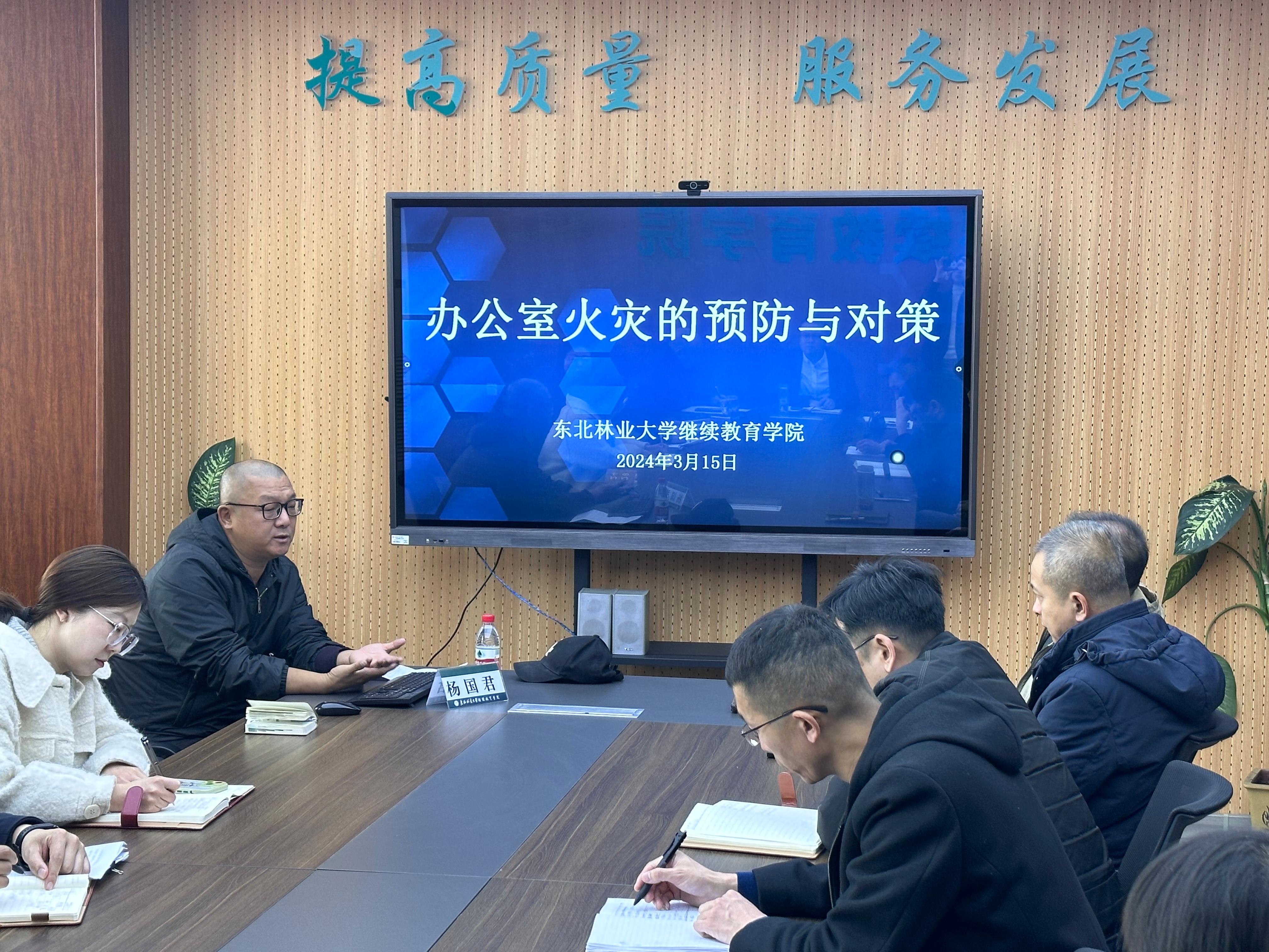 为扎实做好学院消防安全工作,增强职工的消防安全意识与消防安全应急处置能力,3月15日,我院在文博楼308开展“办公室火灾的预防与对策”消防安全培训活动。本次培训邀请了消防工程师杨国君前来授课,培训会由副院长田智主持,继续教育学院全体职工参加。