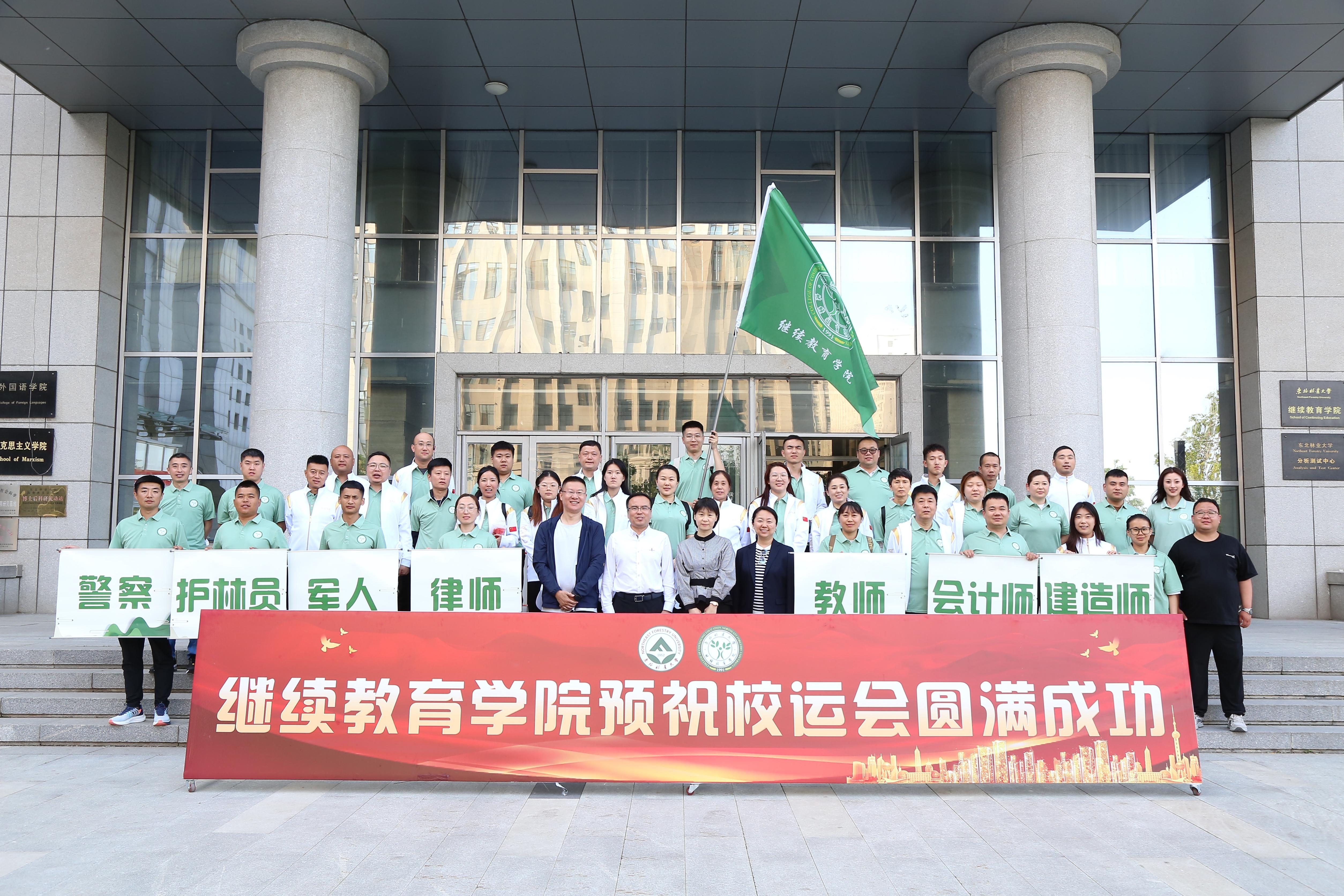 6月3日、4日,东北林业大学第五十六届田径暨阳光体育运动会在体育场举行,继续教育学院来自省内十三个地市的近百名学生积极参加了运动会。