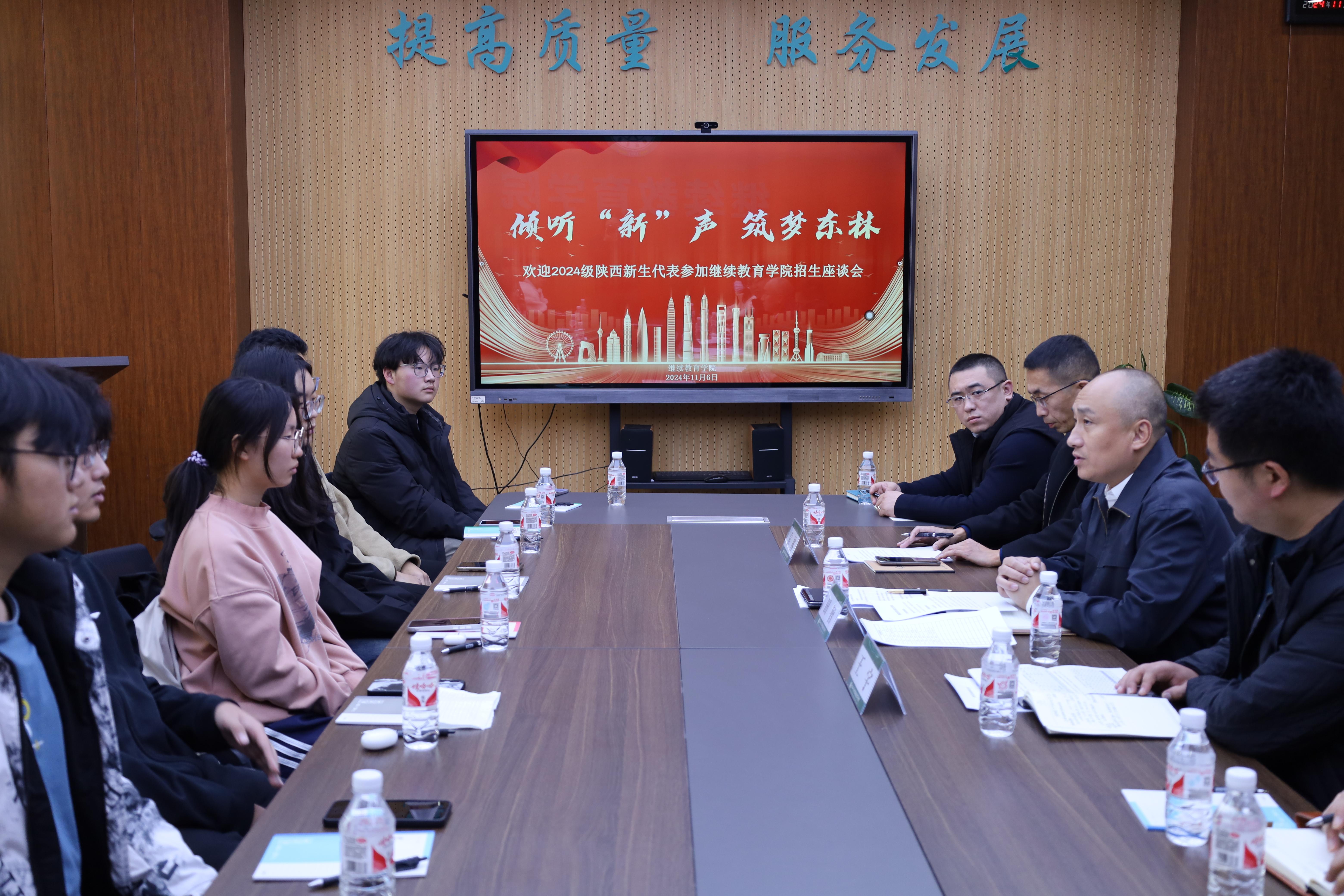 为做好2025年继续教育学院陕西本科招生宣传工作,进一步提高招生宣传质量。11月6日下午,继续教育学院在文博楼310会议室举行2024级陕西招生座谈会。继续教育学院副院长田智、本科生院招生宣传科负责人王宇、学院招生宣传组成员及学校10余位陕西生源学生代表参加座谈会。会议由继续教育学院综合事务办公室主任袁林主持。