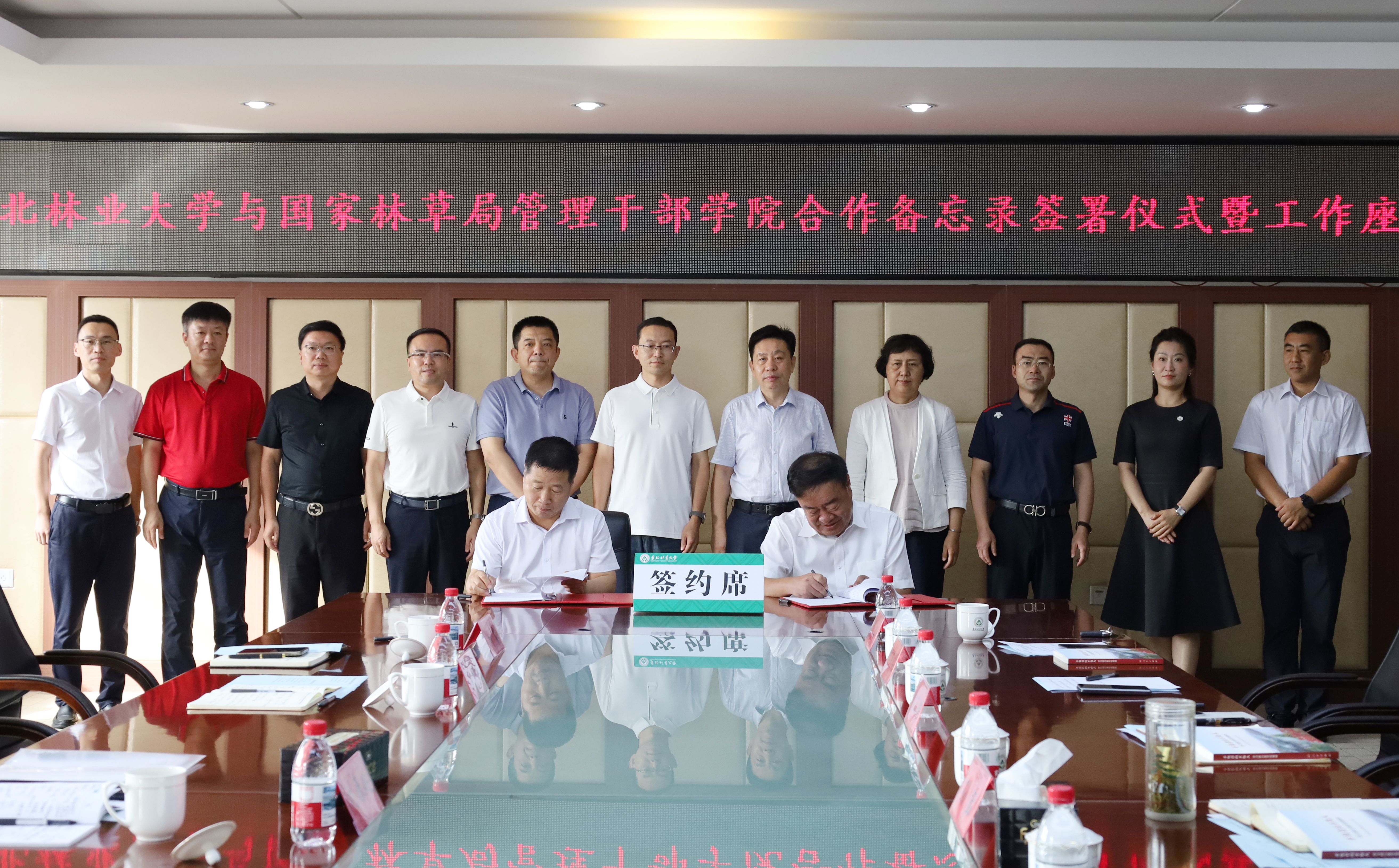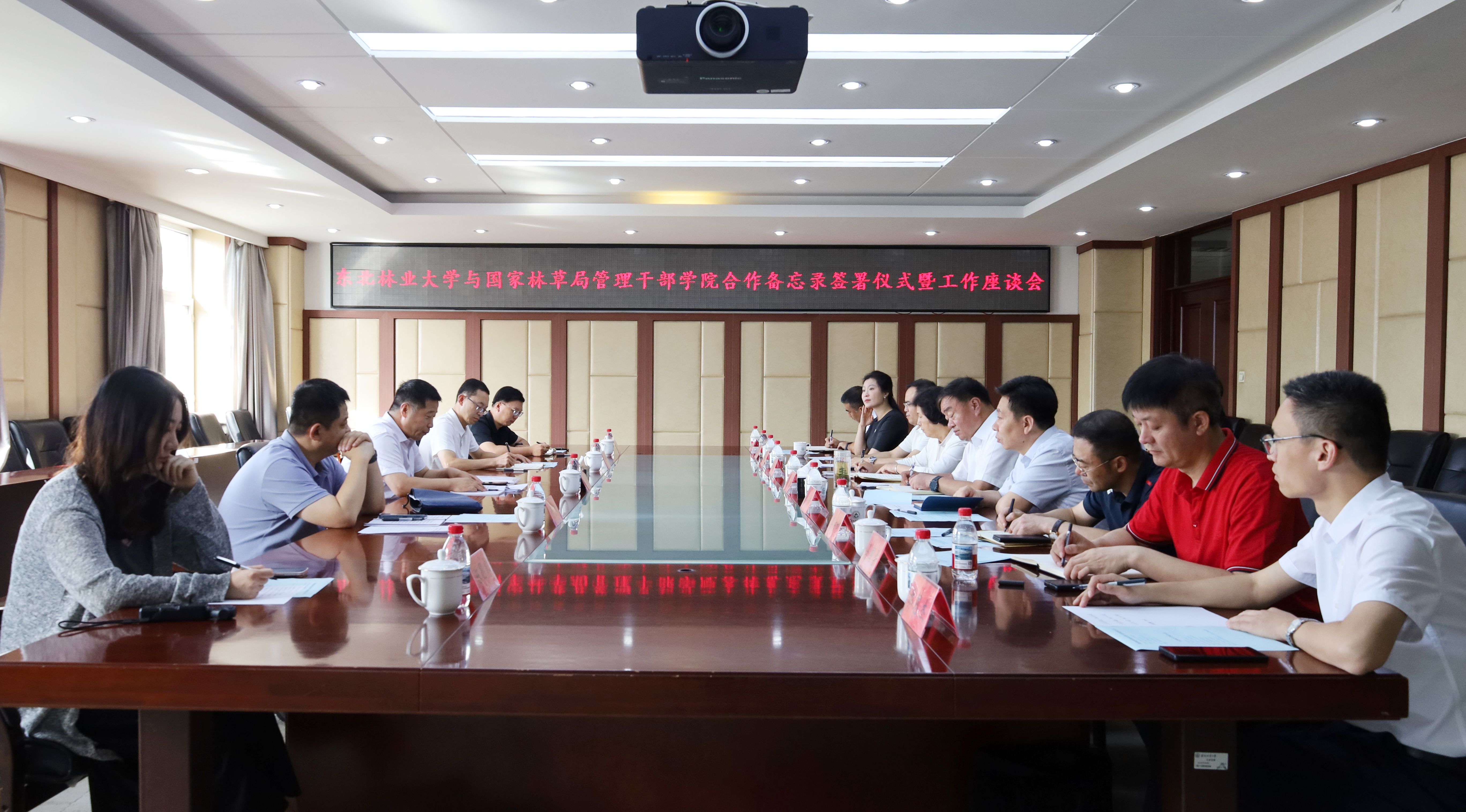 在与会人员的共同见证下,双方代表正式签署了《国家林业和草原局管理干部学院和东北林业大学开展教育培训合作备忘录》。备忘录明确,双方将本着“优势互补、资源共享、互利共赢、共同发展”的原则,在深化教育培训合作、协调科学研究资源、拓展学历教育合作、谋划其他领域合作等方面,建立全方位、多领域、深层次的战略合作关系