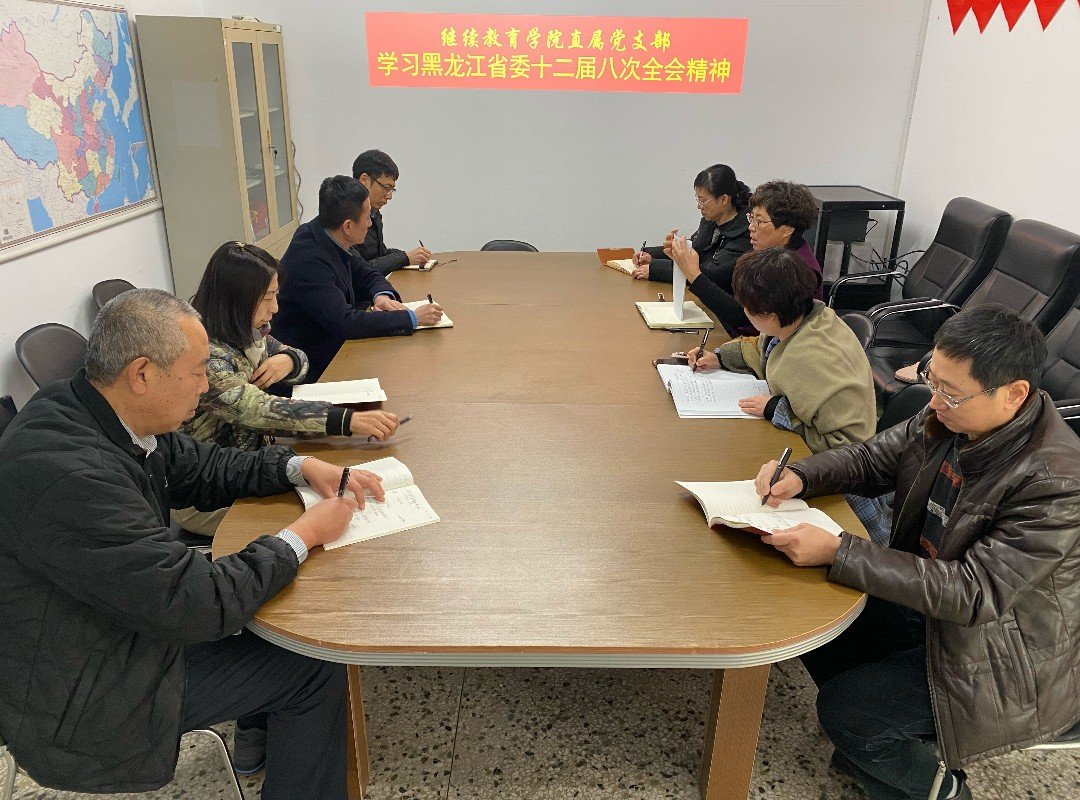 12月30日14:00在文博楼303室,继续教育学院全体党员集中学习了黑龙江省委十二届八次全会精神。