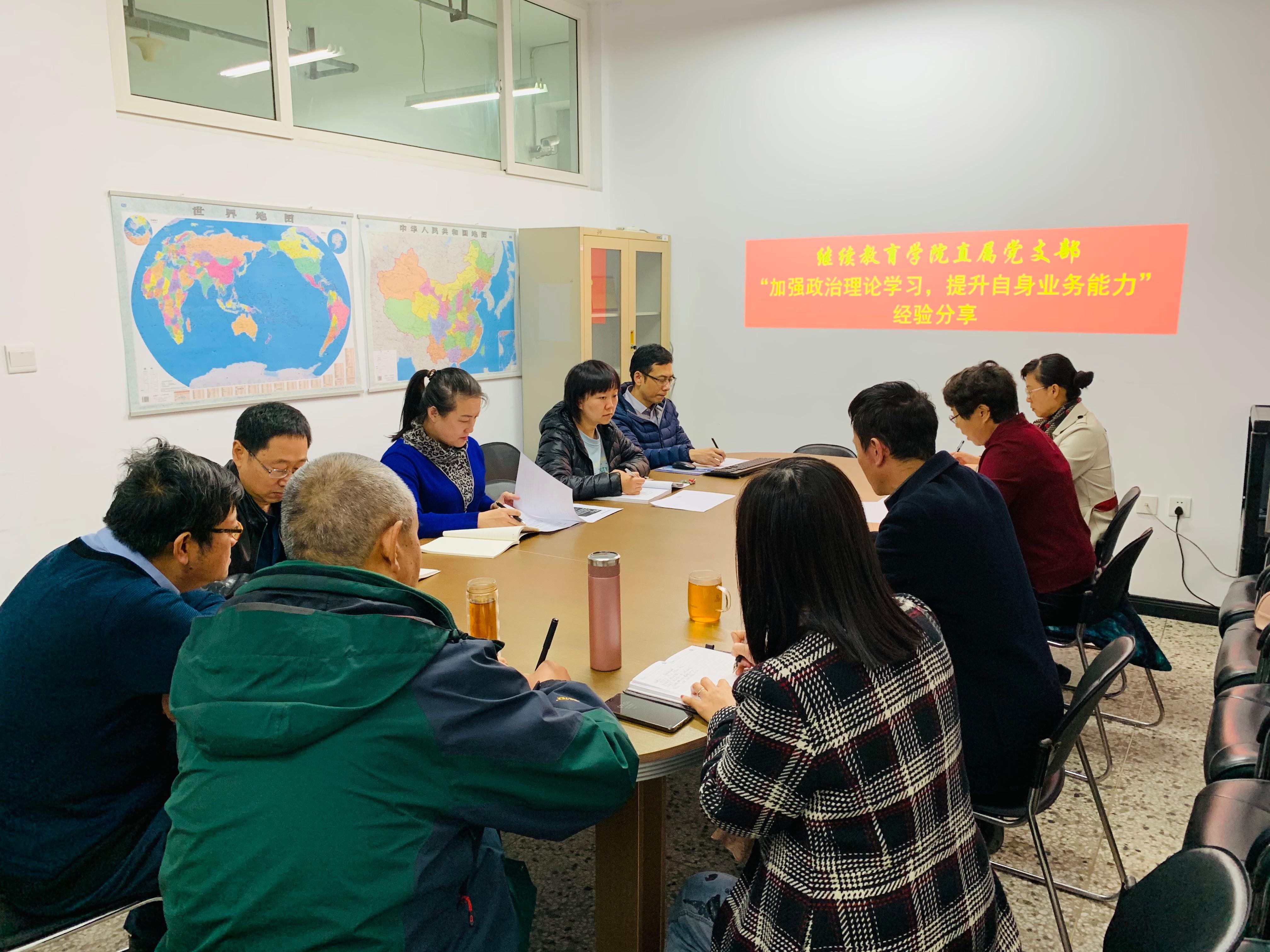 最后,继续教育学院直属党支部组织委员韩悦与宣传委员康寒宁进行了“加强政治理论学习,提升自身业务能力”经验分享。此项活动支部其他党员也将陆续在今后的政治理论学习中进行分享和交流,使党建与业务同向同行,携手共进。