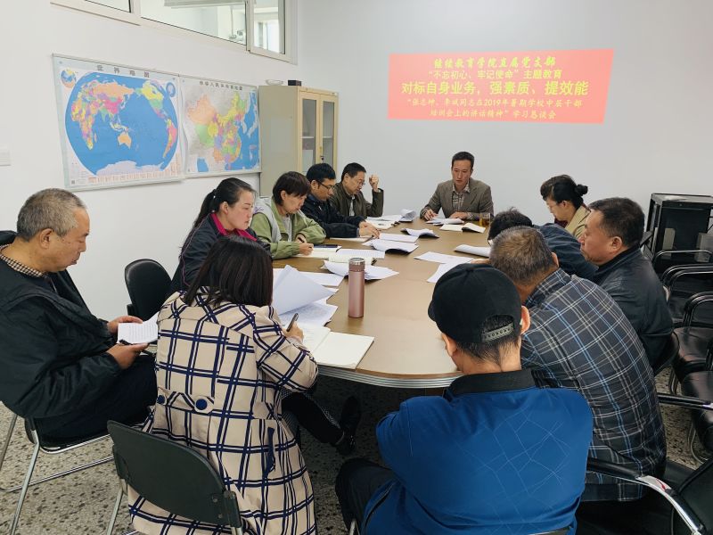 2019年10月9日,继续教育学院直属党支部在文博楼303会议室举行了对标自身业务,强素质、提效能,学习“张志坤、李斌同志在2019年暑期学校中层干部培训会上的讲话精神”学习恳谈会。继续教育学院全体职工参加了此次恳谈会。