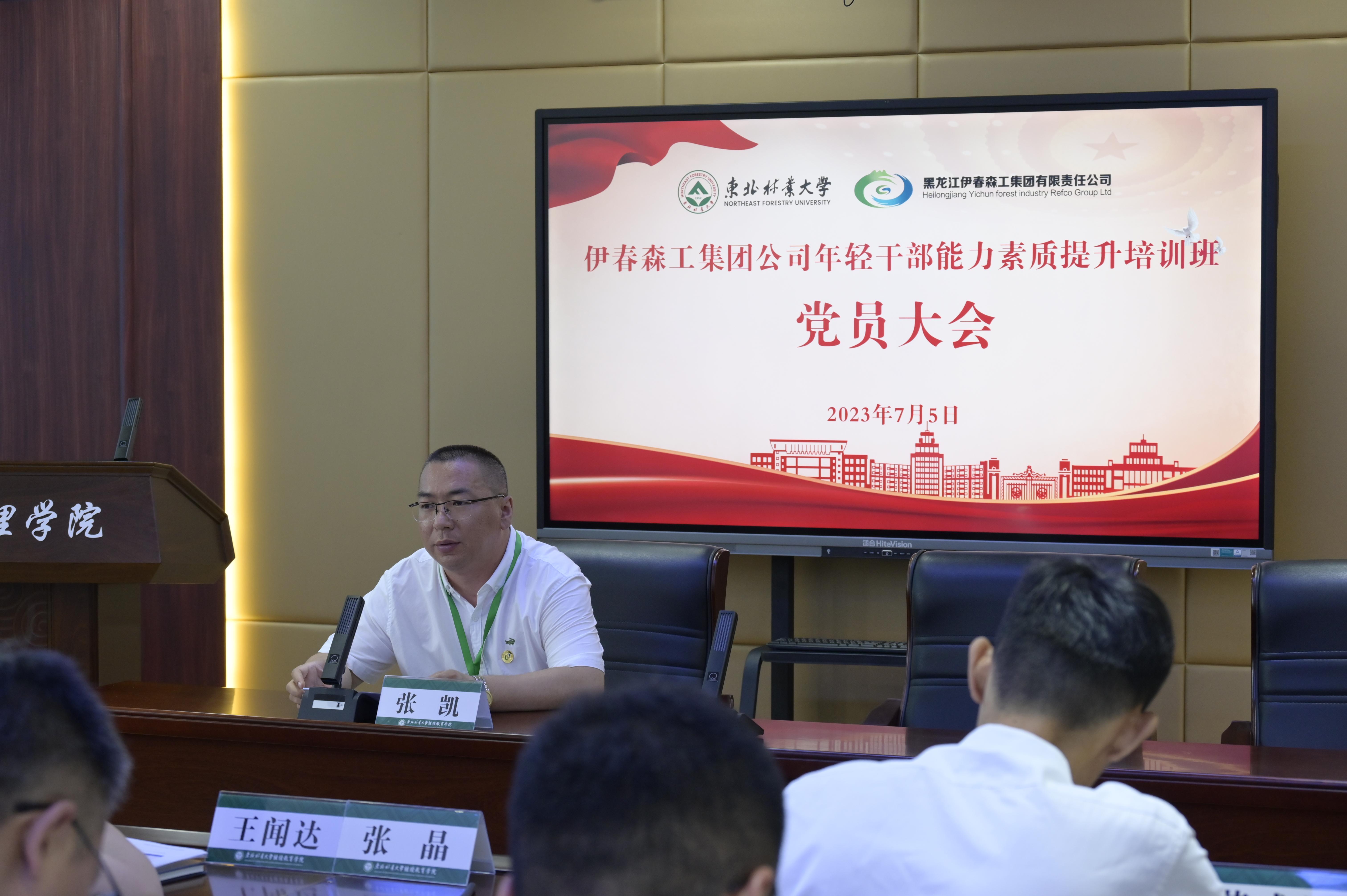 随后,张凯同志代表伊春森工集团对参训学员的日常行为规范提出了一系列要求和建议。他强调,年轻干部是企业发展的中坚力量,他们的能力和素质的提升对于公司的长远发展至关重要。他希望学员能够积极参与培训,挺膺担当、团结奋斗将所学的知识应用到实际工作中,为公司的发展壮大贡献青年力量。通过此次培训,相信伊春森工集团的年轻干部们能够充分利用东北林业大学综合平台优势,服务构建新发展格局,为全面建设社会主义现代化国家贡献森工力量。科学认识,准确把握青年优势,加强伊春森工集团与东北林业大学联通发展,培养一批“坐下来能写、站起来能讲、走出去能干”的一专多能复合型人才,为推动建设高水平行业注入森工担当。