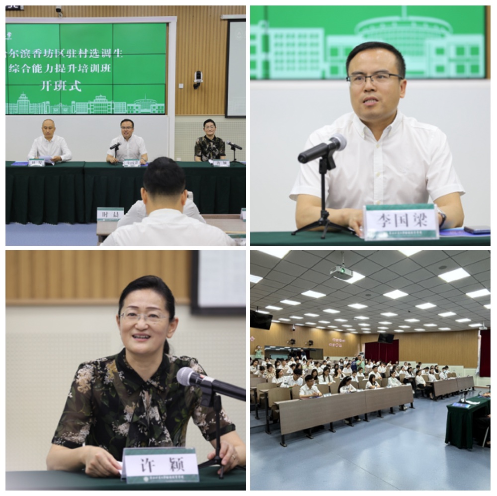 为全面提升驻村选调生综合能力素质,打造符合新时期的高素质选调生干部队伍,近日,哈尔滨香坊区驻村选调生综合能力提升培训班在我校正式开班,继续教育学院院长兼直属党支部书记李国梁、中共香坊区委组织部常务副部长许颖出席开班式,开班式由继续教育学院副院长田智主持。