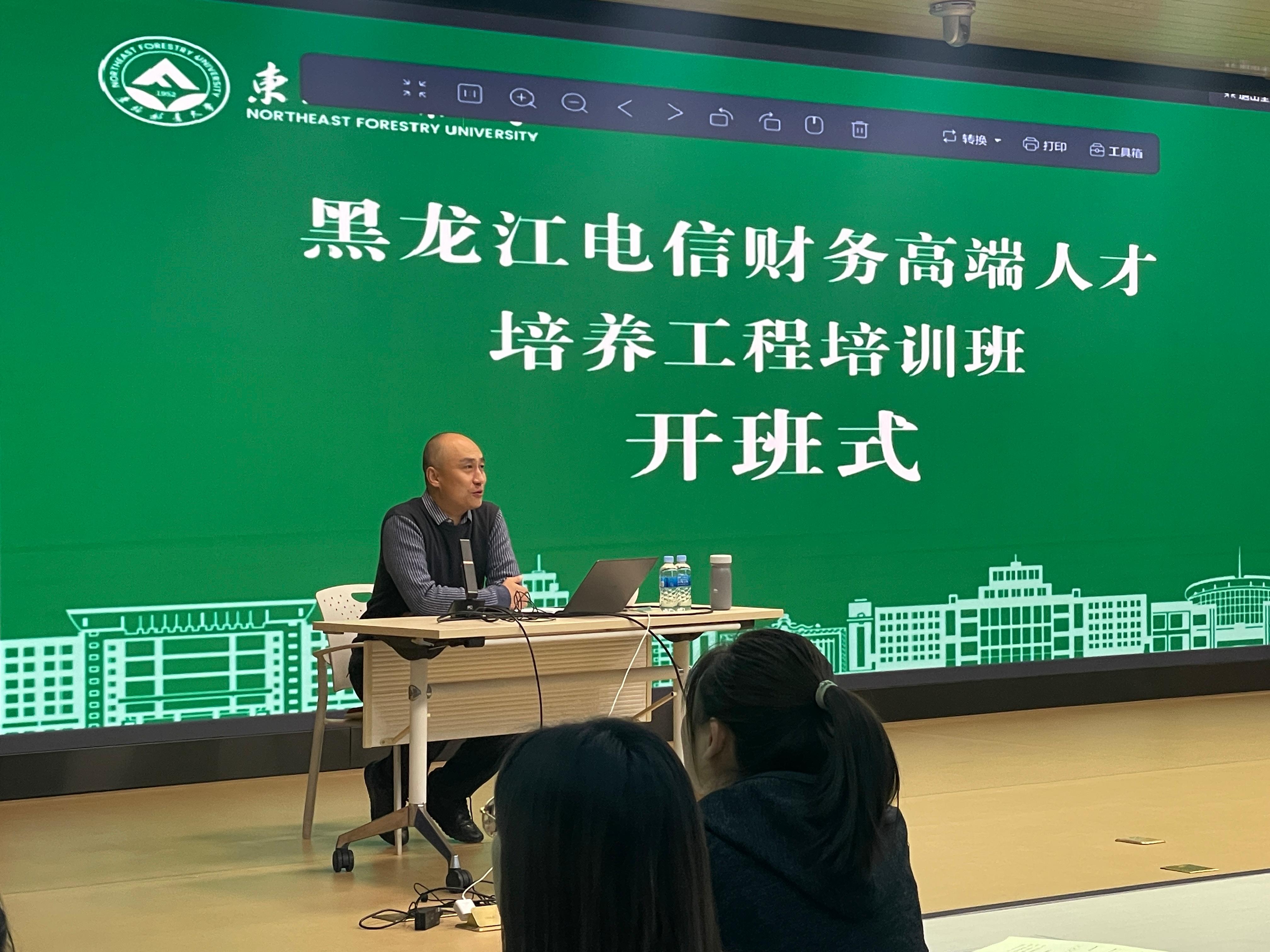 开班仪式上,田智致欢迎词,他表示本次培训班的顺利举办得益于黑龙江电信财务部门领导的高度重视,同时我校也是把本次培训作为服务行业发展的重点工作来抓,通过校内的严格的申报和审核流程后正式开展此次培训。他希望全体参训学员能抓住本次学习机会,共同交流学习心得,分享工作经验,展现出黑龙江电信财务人员团结奋进、追求卓越的精神风貌。随后他简单扼要地介绍了东北林业大学的发展历程和继续教育学院发展非学历教育培训的独特优势。